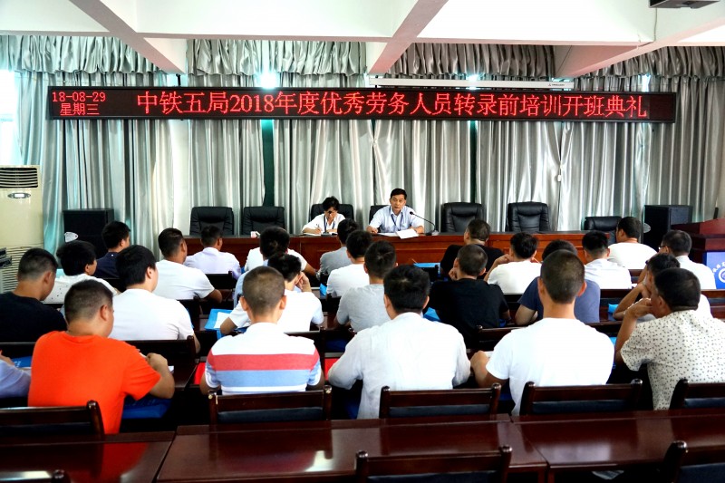 根据《关于2018年度优秀劳务工转录前培训和考核的通知》(公司人资电〔2018404号)精神,2018年8月29日至9月4日在贵州铁路技师学院对中铁五局2018年度优秀劳务人员进行了转录前培训。