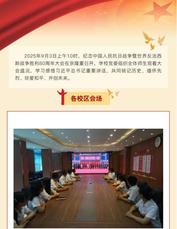 贵阳铁路工程学校(贵州铁路技师学院)组织收听收看纪念中国人民抗日战争暨世界反法西斯战争胜利80周年大会直播
